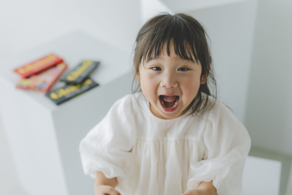 チョコがだいすきで、嬉しそうに持ってる姿もこっそり食べようとする姿もぜんぶがもう「3歳」って感じでたまらなかった