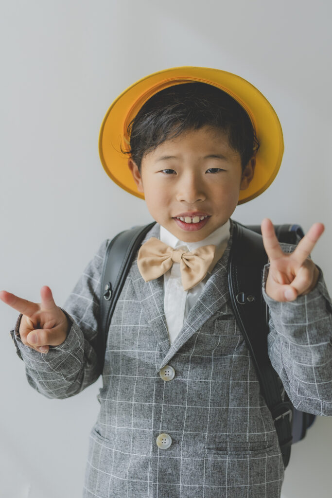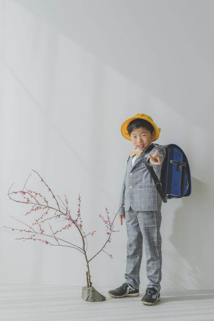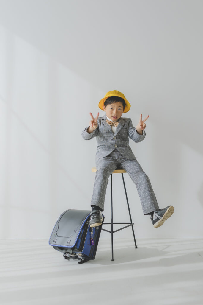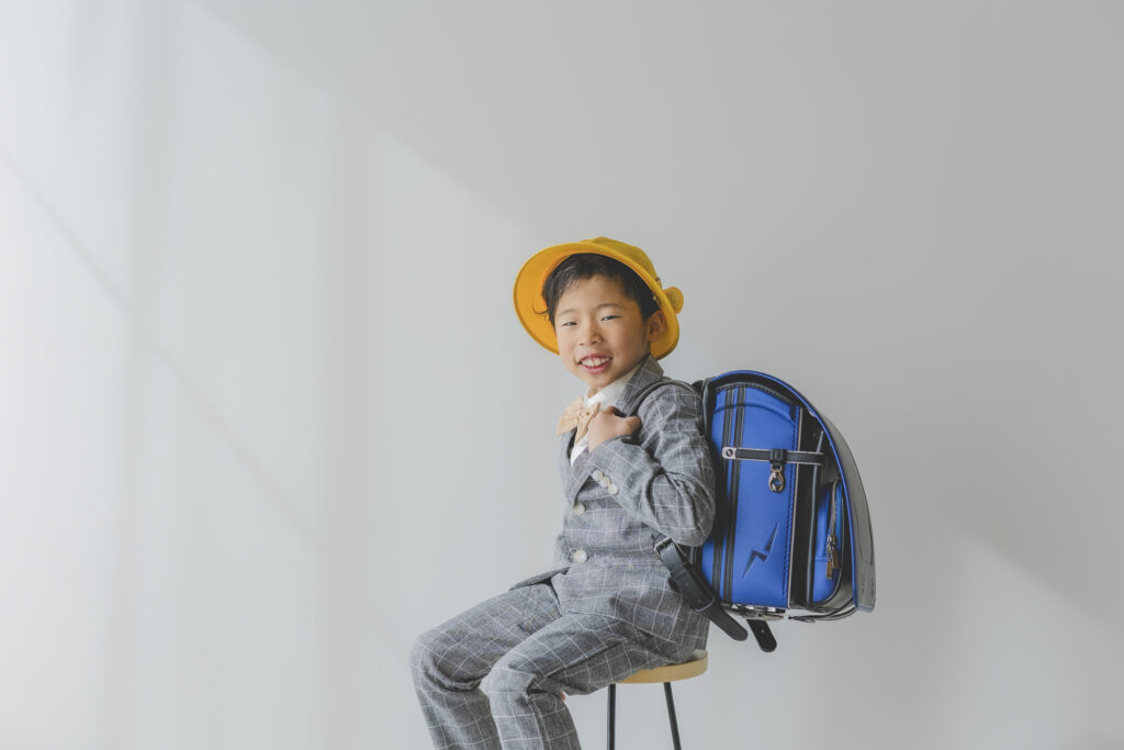 入学記念に習い事のユニフォームやランドセルでの撮影。
