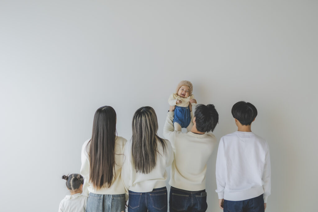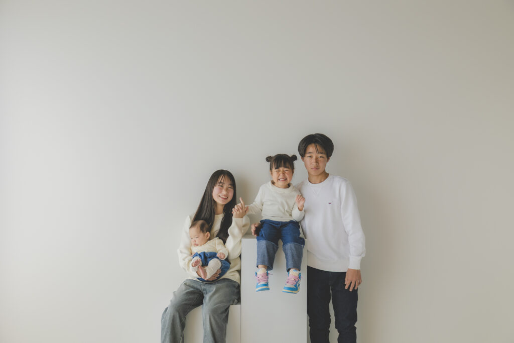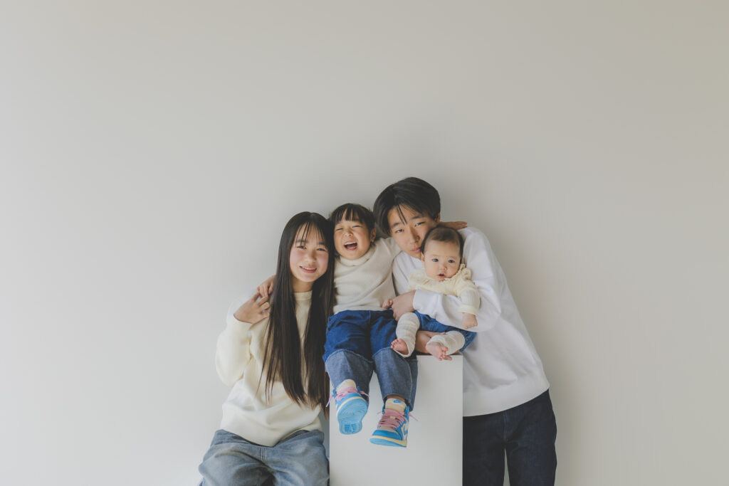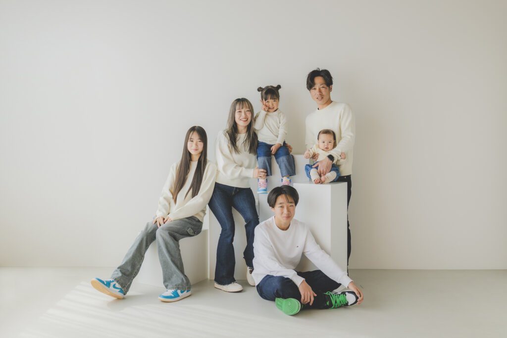ご家族全員が末っ子の娘ちゃんにメロメロ! お兄ちゃん、お姉ちゃんたちが優しく見守る姿に、スタジオ全体が温かい幸福感に包まれたスタジオ撮影となりました。