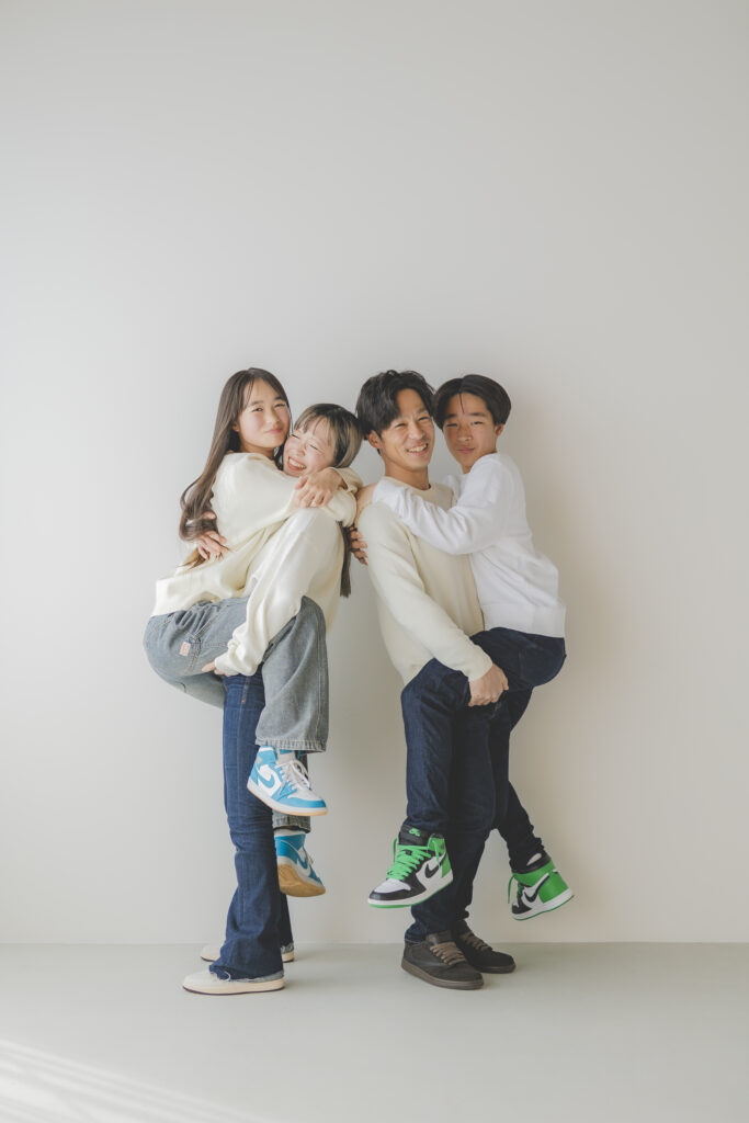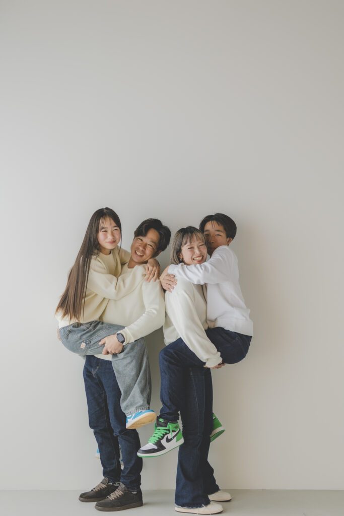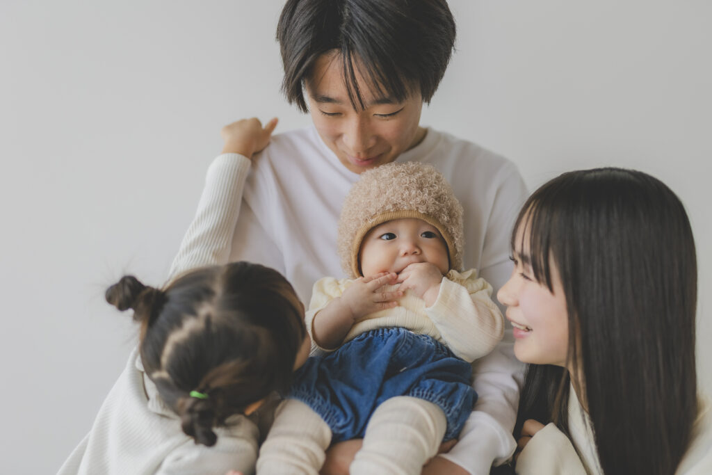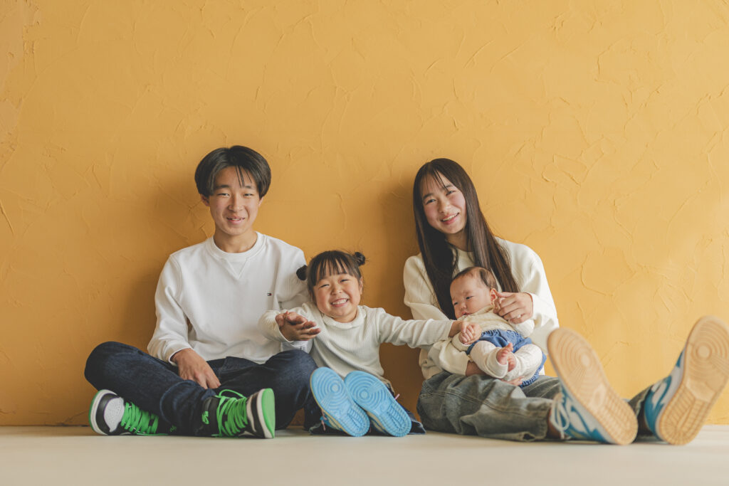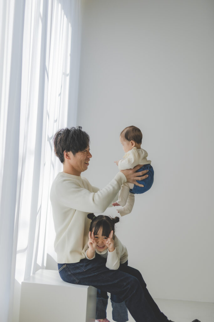 ご家族全員が末っ子の娘ちゃんにメロメロ! お兄ちゃん、お姉ちゃんたちが優しく見守る姿に、スタジオ全体が温かい幸福感に包まれたスタジオ撮影となりました。